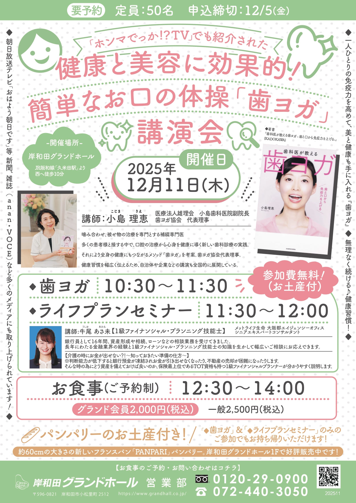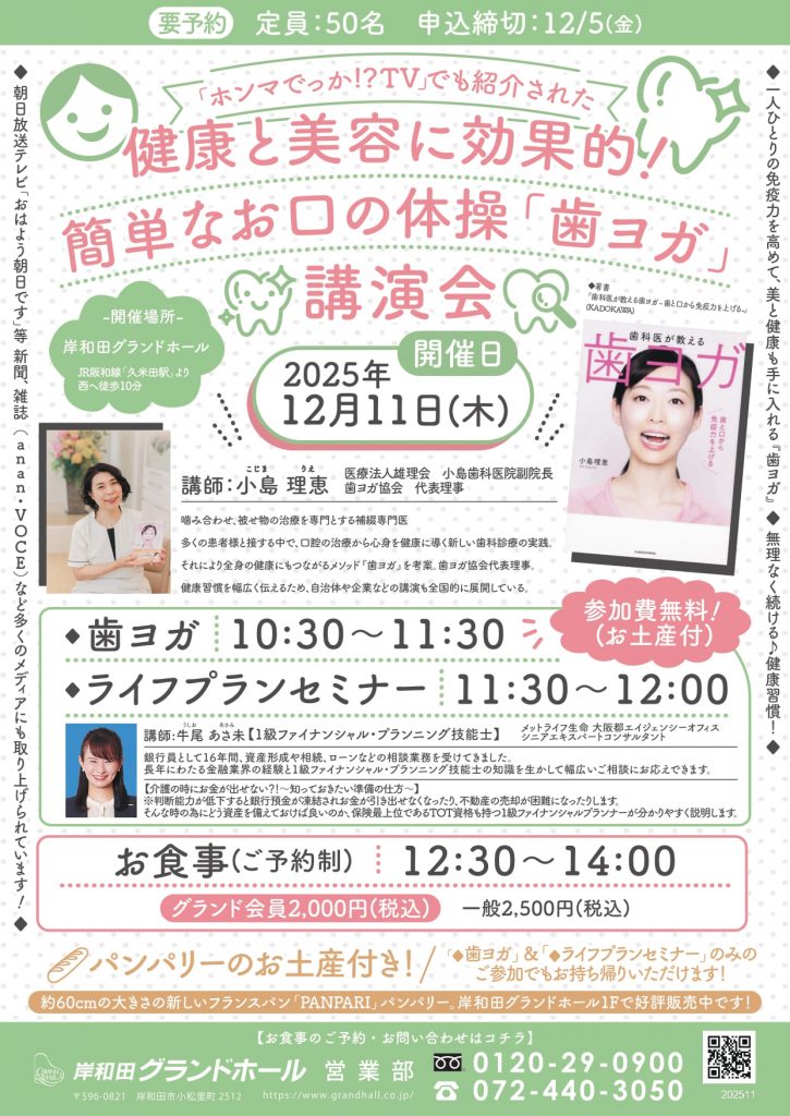 この度、12月11日に岸和田グランドホールにて「歯ヨガ」講演会を開催いたします。