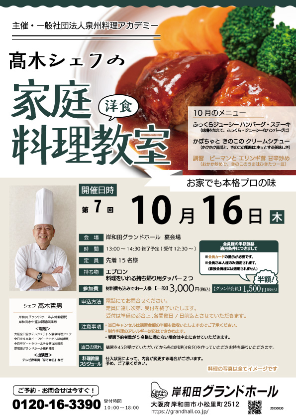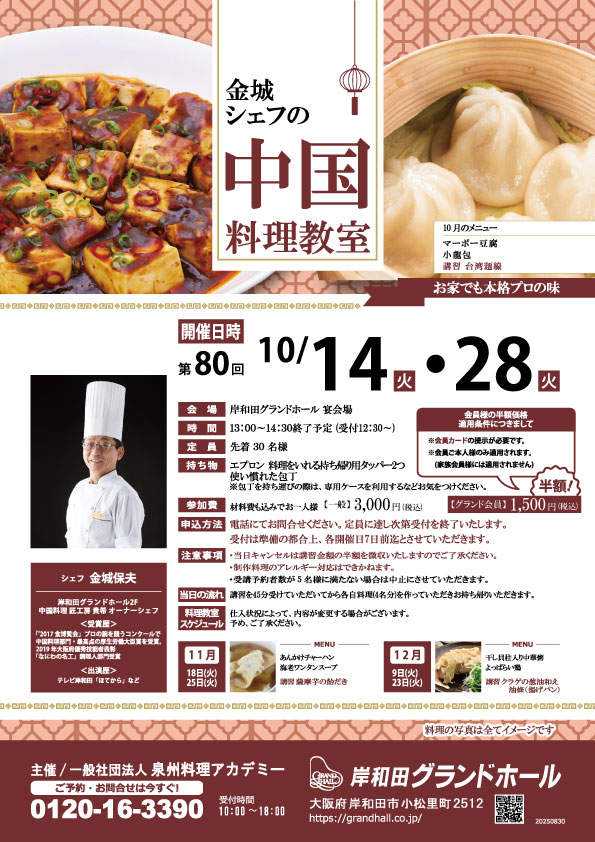 3. 岸和田グランドカルチャー10月「家庭(洋食)料理&中国料理教室」